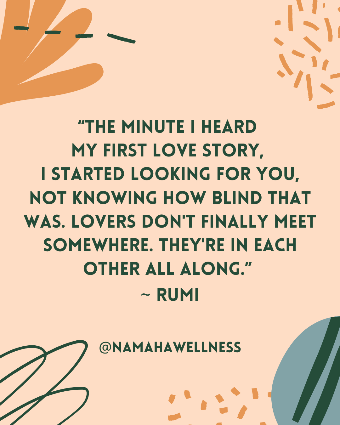 “The minute I heard my first love story, I started looking for you, not knowing how blind that was. Lovers don't finally meet somewhere. They're in each other all along.” ~ Rumi